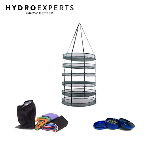 Well constructed, the tiers and outer shell consist of a special-weave nylon mesh that maximizes air circulation. The wire frame is rust proof, high-tensile steel. When suspended in a dry and well-ventilated interior area, the herbs dry evenly and completely, ensuring a high yield. There is 1858 Sq.CM of space on each shelf. The 61CM (24" Inch) shelves average 20CM (7.9" Inch) apart.