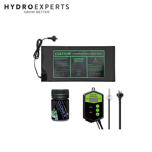 Cultiv8 Heat Mat 644MM x 350MM + Seedling Thermostat + GT Clonex Purple 50ML