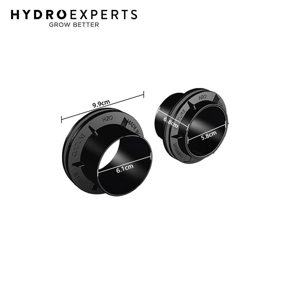 The CCH2O 76.2MM (3" Inch) Under Current Spin Tight Bulkhead creates a secure, watertight seal around Under Current growth modules. Its unique design reduces stress on module sidewalls, extending product life. Constructed of UV-stabilized, heavy-duty ABS plastic, the bulkhead provides years of durable use while remaining fully recyclable. Compatible with 76.2MM (3" Inch) ABS and PVC piping, it is well-suited for do-it-yourself hydroponic applications. Manufactured in California, the bulkhead features straightforward installation after reviewing the provided instructions. Its tight-fitting design and durable materials result in a reliable grow system component that stands up to frequent use.