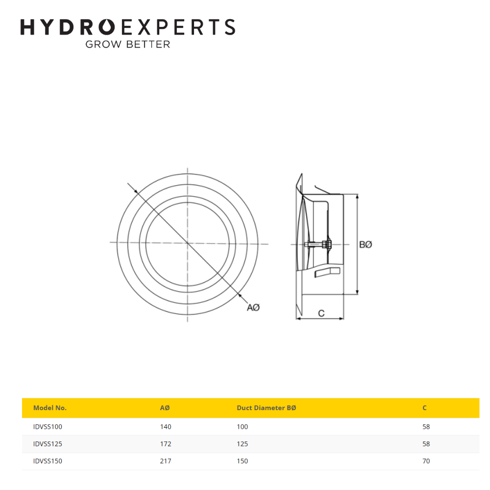 Fantech IDVSS Internal Duct Valve Round Grille 304 Stainless Steel - 100MM / 125MM / 150MM