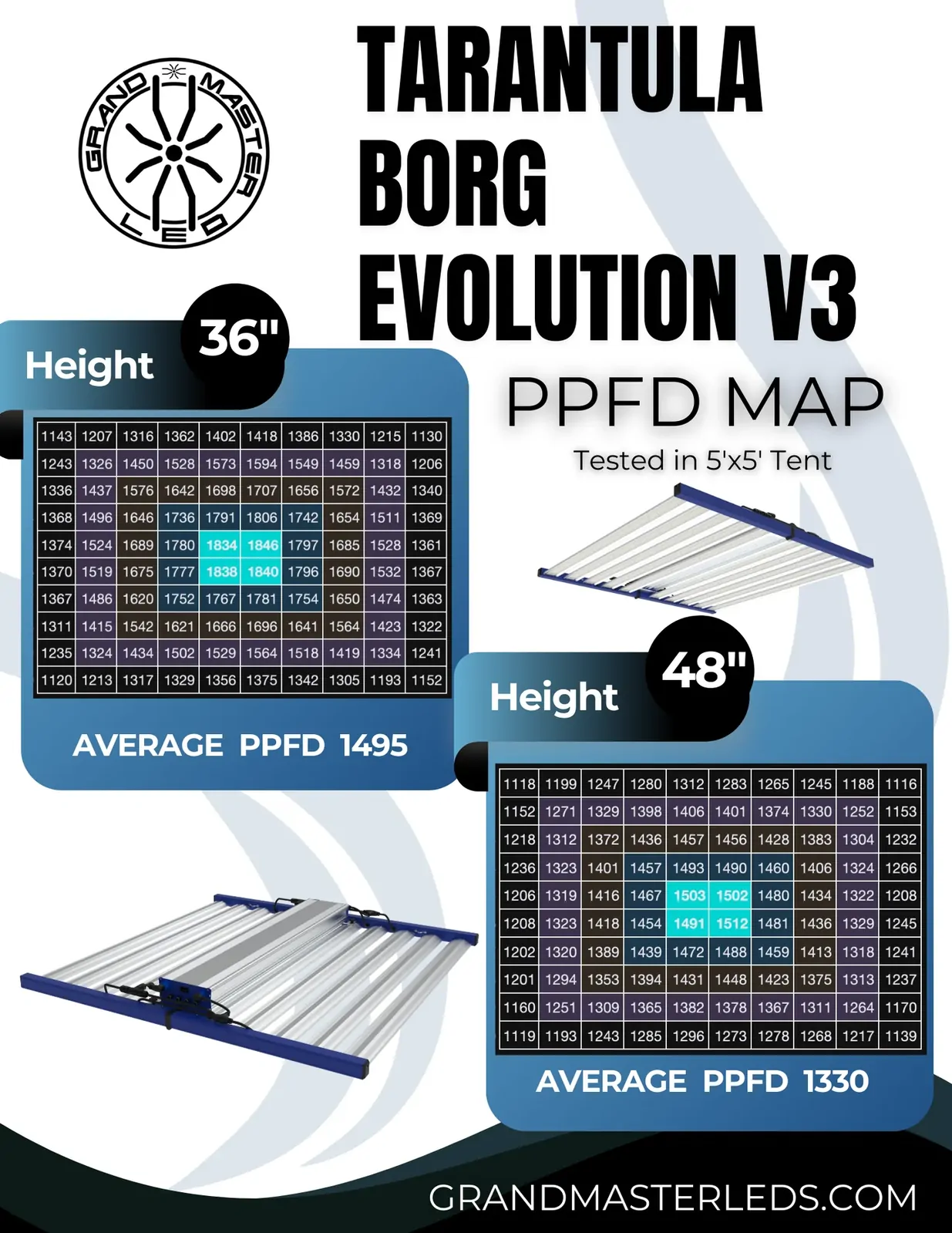 Grand Master LED (GML) Grow Light Tarantula Borg Evo V3 - 1700W | 2.8 umol/J | IP66