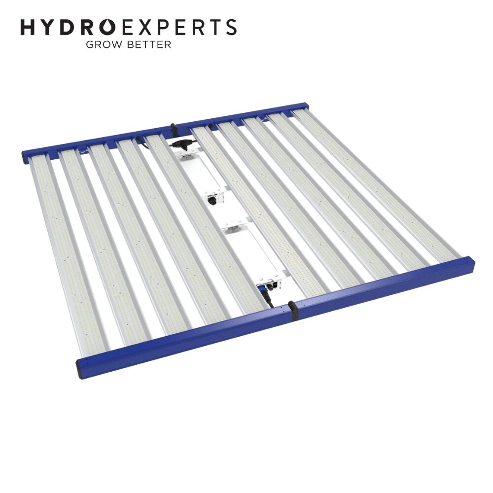 The Grand Master LED Tarantula Explorer is a commercial 10‑bar fixture purpose‑built for vertical racks, low ceilings, and 5x5 ft flowering tents. It features manual knob dimming plus RJ‑port dimming (0–10V, DIM‑TO‑OFF), a folding chassis for rapid installs, IP66 environmental sealing, LEDESTAR diodes, 6kV surge protection, and a 5‑year warranty, making it a robust choice for Australian grow rooms.
