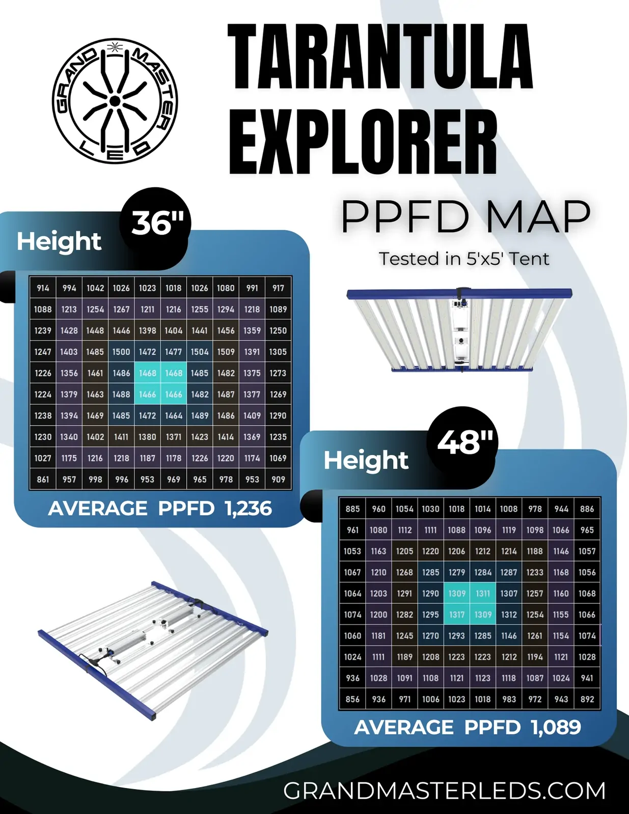 Grand Master LED (GML) Grow Light Tarantula Explorer - 1440W | 2.67 umol/J | IP66
