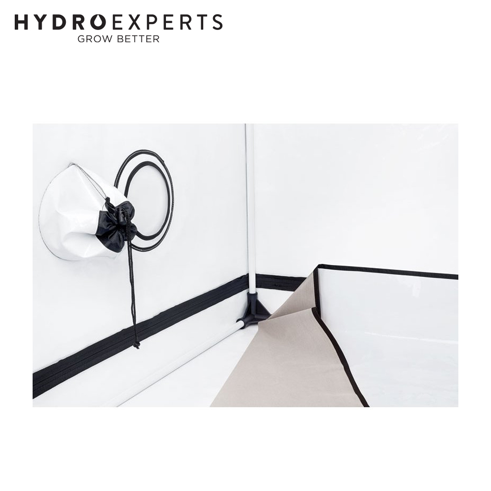 With this magnificent square grow room, every gardener will rise to the ranks of masters! A whopping 5.7 square meters of usable space is suitable for up to four 1000 W air-cooled plant lights or nine 400 W bulbs! With this size, the user particularly benefits from the latest development: the height has been increased by 20 centimetres. Additionally, large side windows and total blackout zippers that don't need to be cumbersomely connected greatly simplify access and maintenance. Pots and tubs can be pulled out of the grow tent without being lifted!