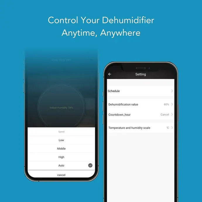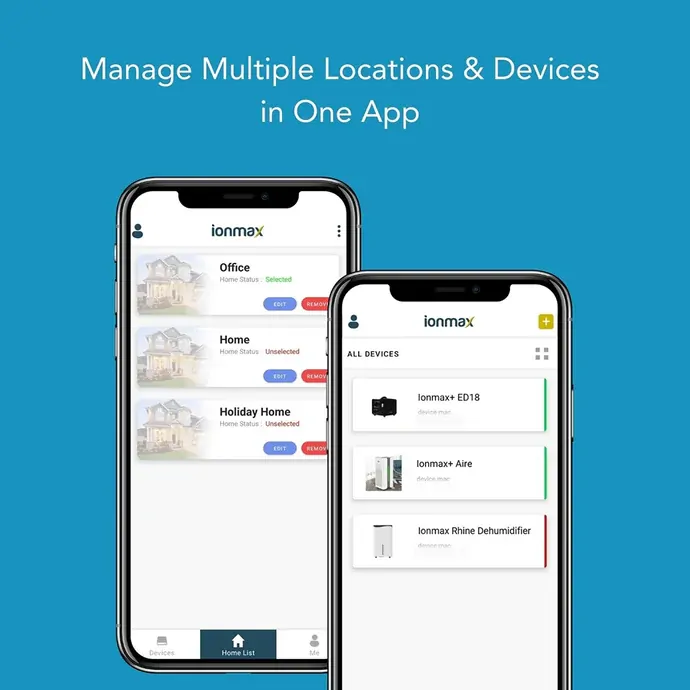 • Smart App Control: Adjust settings, monitor humidity, and schedule operation via the Ionmax app.