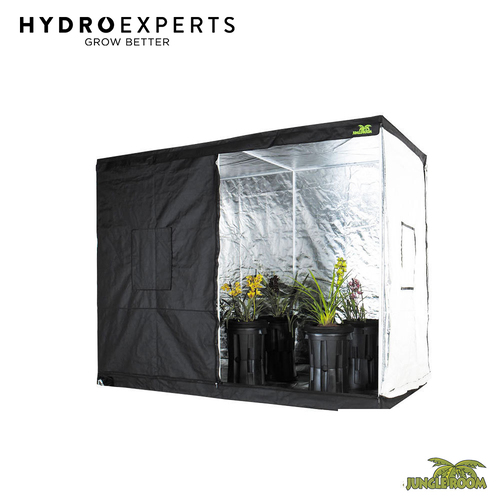Jungle Room tents are heavy duty, featuring 19MM diameter all-steel constructed frames and corners, for long term reliability. Each frame will securely hold up to an extraordinary 80KG of lighting, fans and air filters. They heavyweight, lightproof outer and highly reflective mylar inner means maximum light efficiency. And, with both easy glide zippers and outlet drawstrings, any nutrient odours are sealed inside. The 250MM duct outlets and lower air flaps have been perfectly positioned to allow closed loop air-cooled lighting and internal air circulation, vital for vigorous plant growth. To maintain the perfect environment while checking on plant progress, there are large velcro flaps viewing windows. The jungle Room range also features 9 standard height and 6 industry-leading higher ceiling tents.