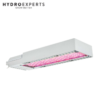 The VF90W comprises three 30W LED bars with 4000K White and 3000K Warm White diodes, with a total PPF output of 244 umol/s and a 2.4 umol/J Efficacy. The VF range already includes the new clear Glue protection cover technology on the LED bars; resulting in higher light transmittance of 99% without light loss, extended lifetime of diodes, extra corrosion resistance and high waterproofing of IP65. For basic maintenance, simply clean the bars with wet cotton. The fixture will require a 650W Driver (sold separately) that can run up to 7 VF90W fixtures per unit and can be dimmed with a 0-10V Light Dimmer (also sold separately) or externally controlled with our Digital Panel Plus 2.0 or any other Universal Controller 0-10V.