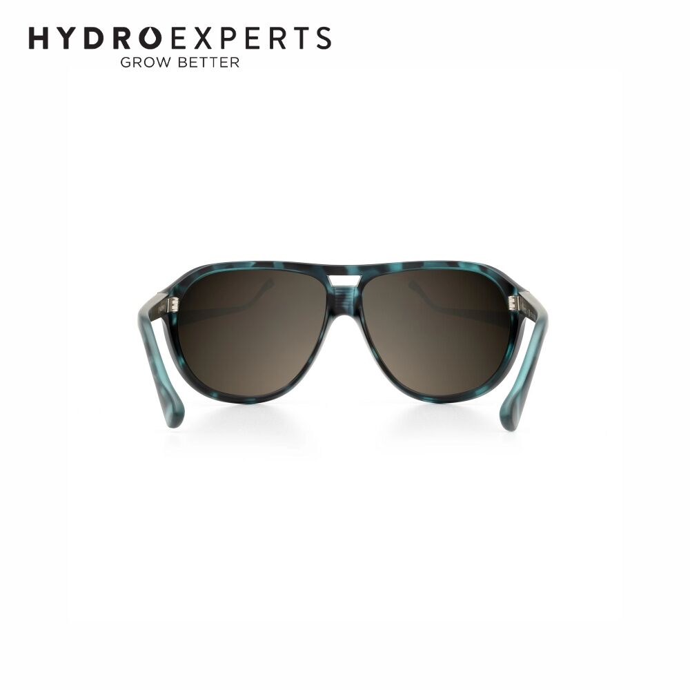 A retro aviator-style frame in a stunning emerald tortoise matte finish, designed in collaboration with and proven by the renowned "The Dank Duchess."
