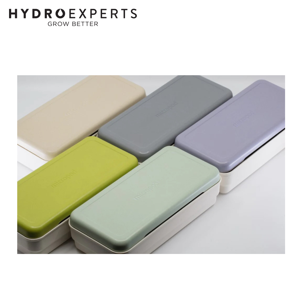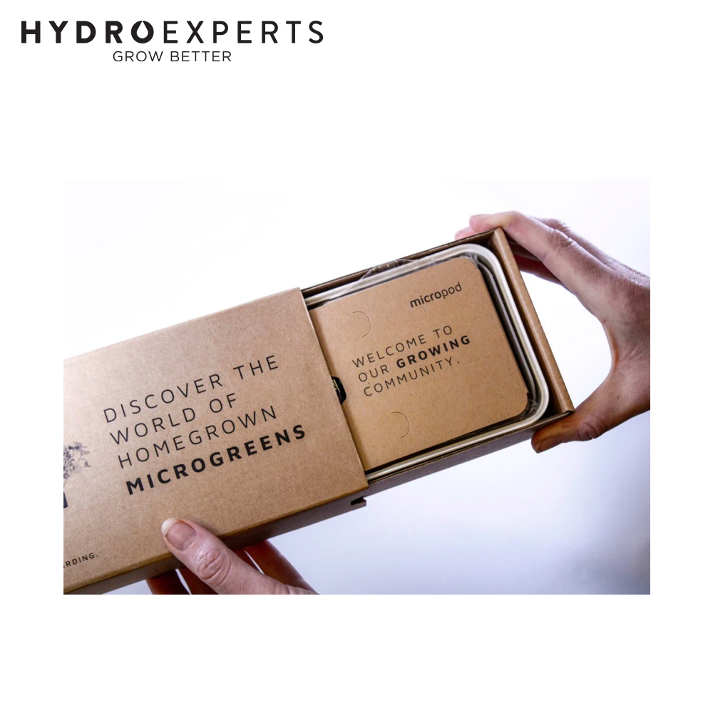 The micropod Starter Kit blends functionality and aesthetics and will complement any home.  Designed to sit on any windowsill or in a warm sunny spot, you can enjoy fresh, homegrown microgreens in less than two weeks by just adding water!