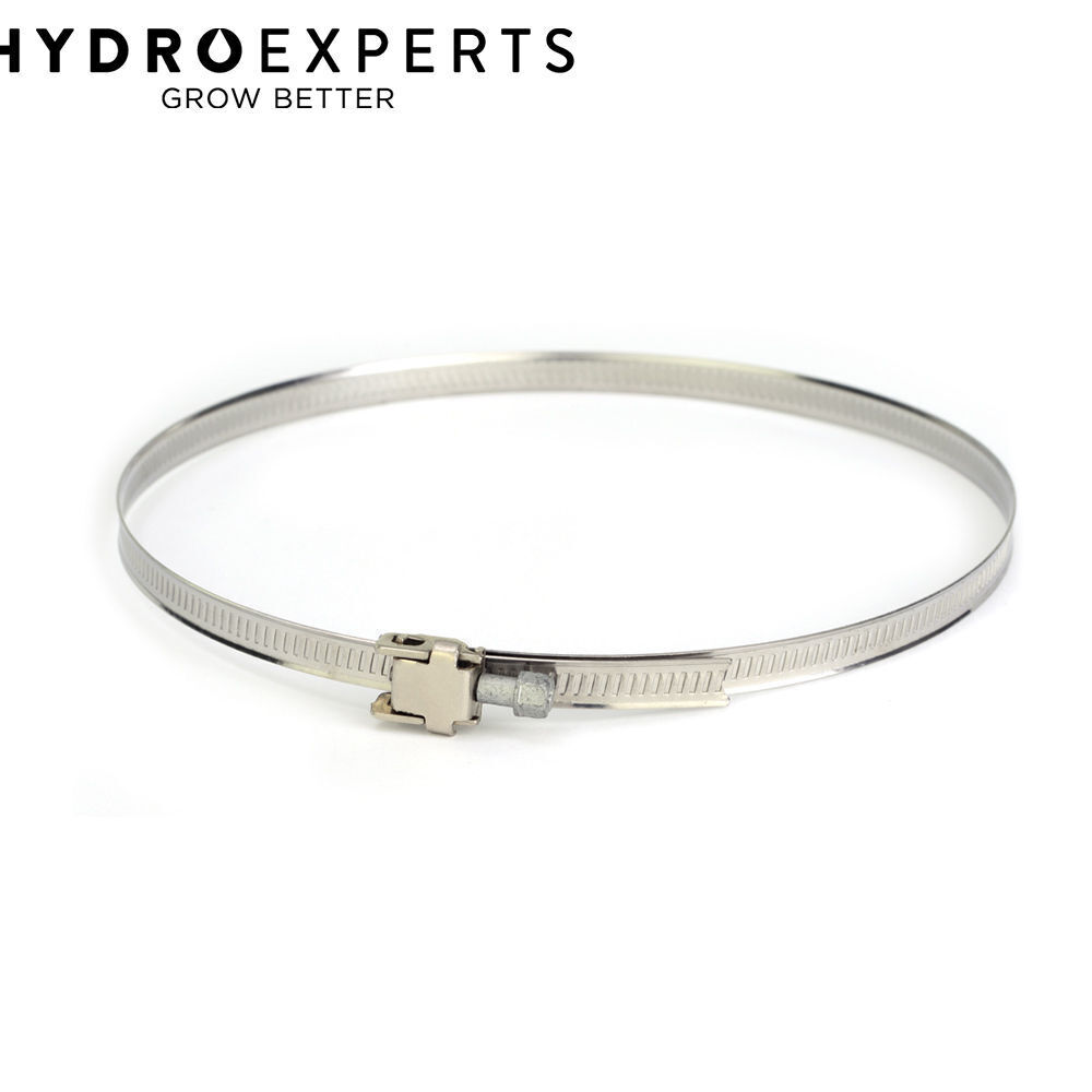 Quick release stainless steel hose clamps. Just release the tension on the screw and flip up to instantly release the clamp. Allows for easy removal of the clamp for quicker flex duct removal when cleaning the glass in your air cooled fixture or accessing your lamp.