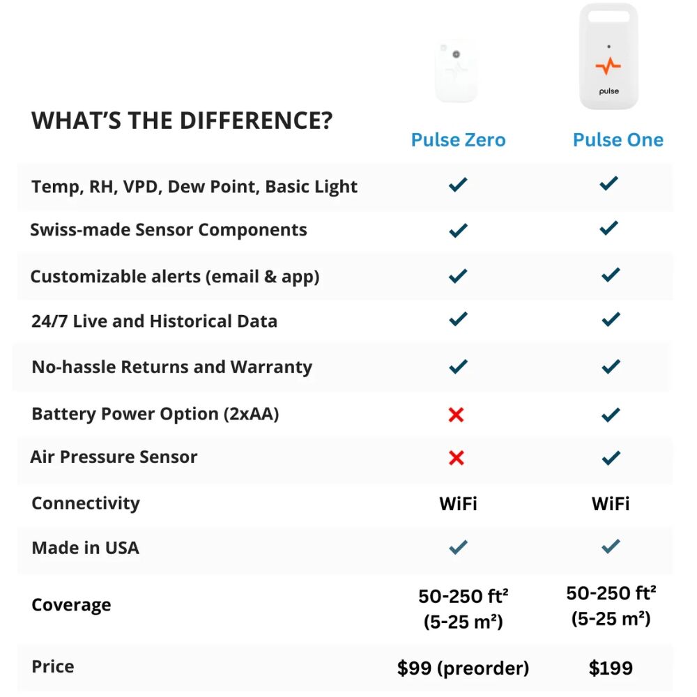 - [1] x Pulse Zero Environmental Monitor | VPD, Temp, Humidity, Lux & Dew Point
