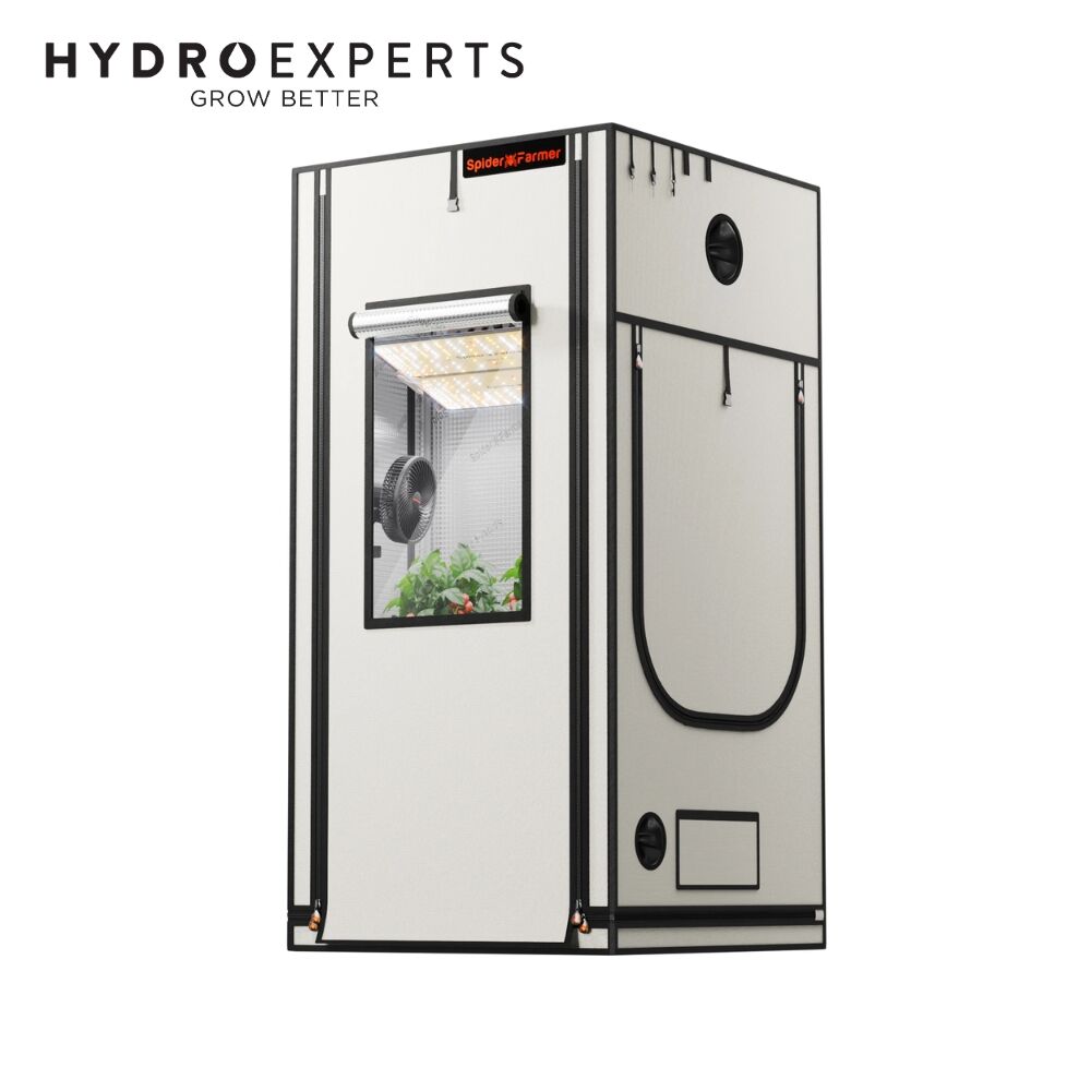 Built with strong steel framing, reinforced 16mm poles, improved light-proof vent ports, dual heavy-duty zipper access, and a removable water-resistant floor tray, the Spider Farmer 90 x 90 x 180CM Pro grow tent is engineered for convenience, stability, and efficient indoor gardening. For Australian growers wanting a premium white grow tent with strong light control and organised functionality, this is an excellent option.