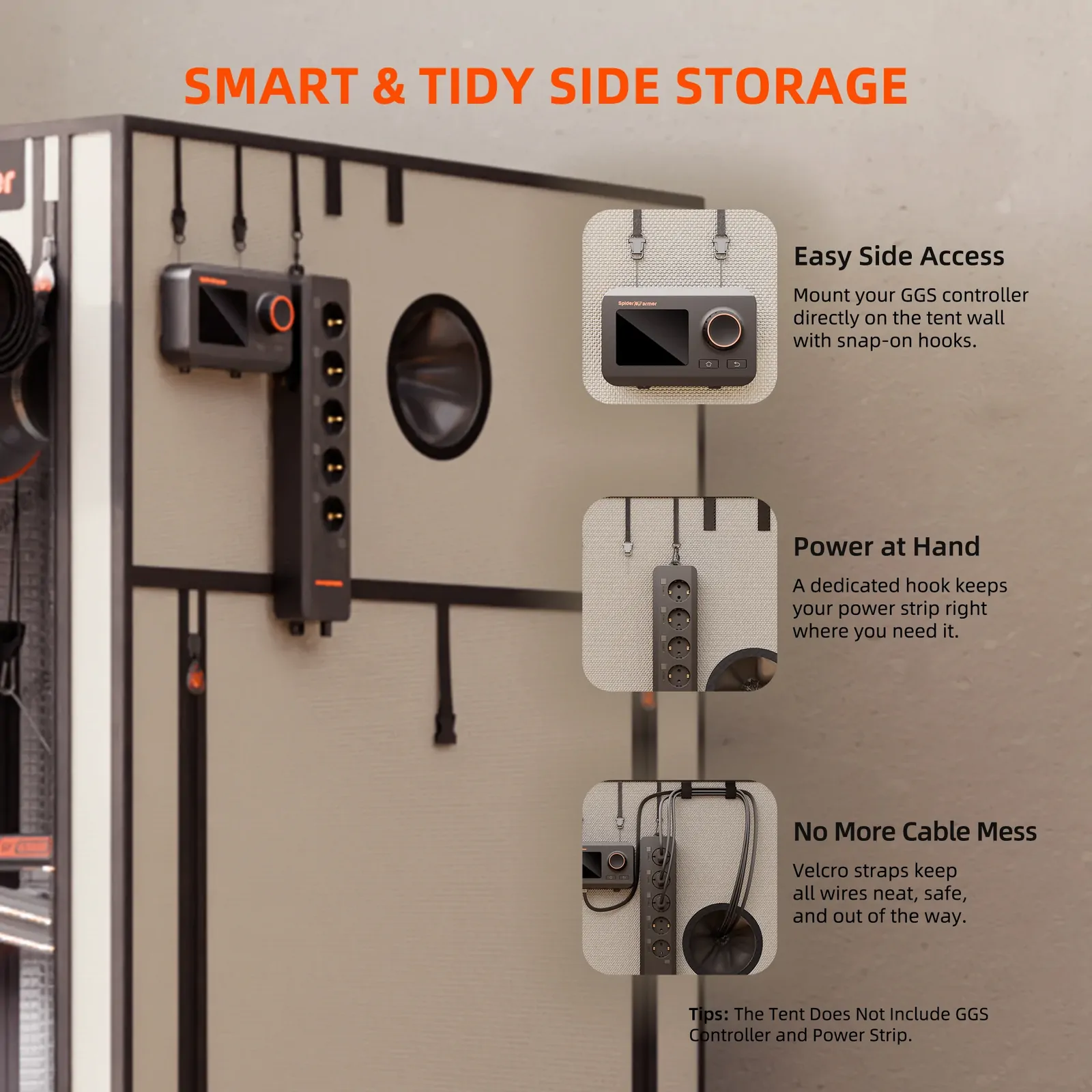 - Smart Side Storage System: Built-in hooks and cable organisation points help neatly mount controllers, power strips, and wiring on the tent wall.