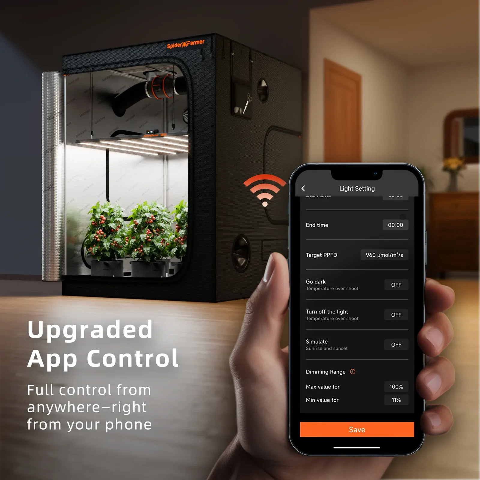 - Bluetooth and WiFi App Control: Built-in Bluetooth and WiFi connectivity allow seamless control through the Spider Farmer App for easier grow light management and adjustment.