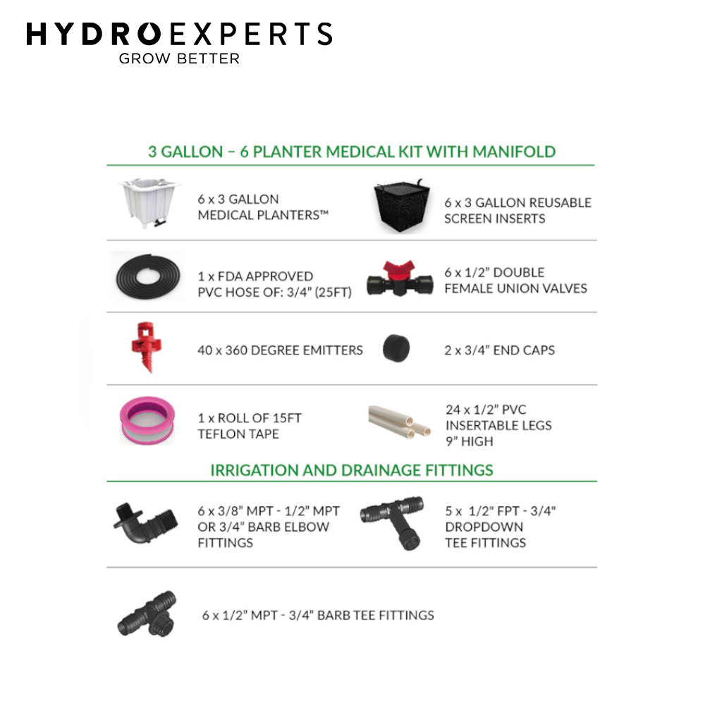 The Bucket Company 3 Gallon 6 Pot Planter Kit - Medical / Black | Drip System