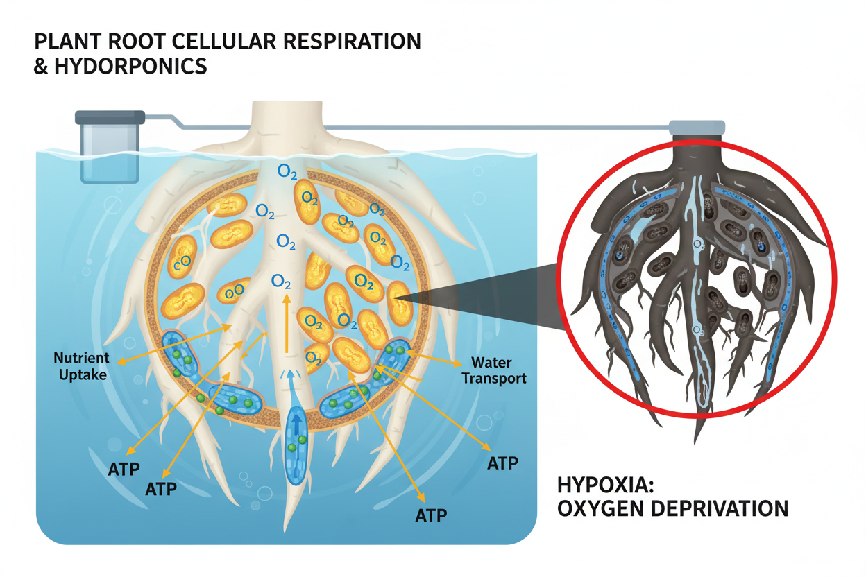Plants in hydroponic systems require oxygen for survival. Roots absorb oxygen to perform cellular respiration. This biological process generates the energy necessary for nutrient uptake and water transport. Without oxygen, root cells experience hypoxia. This condition leads to the cessation of growth and the eventual death of the plant.